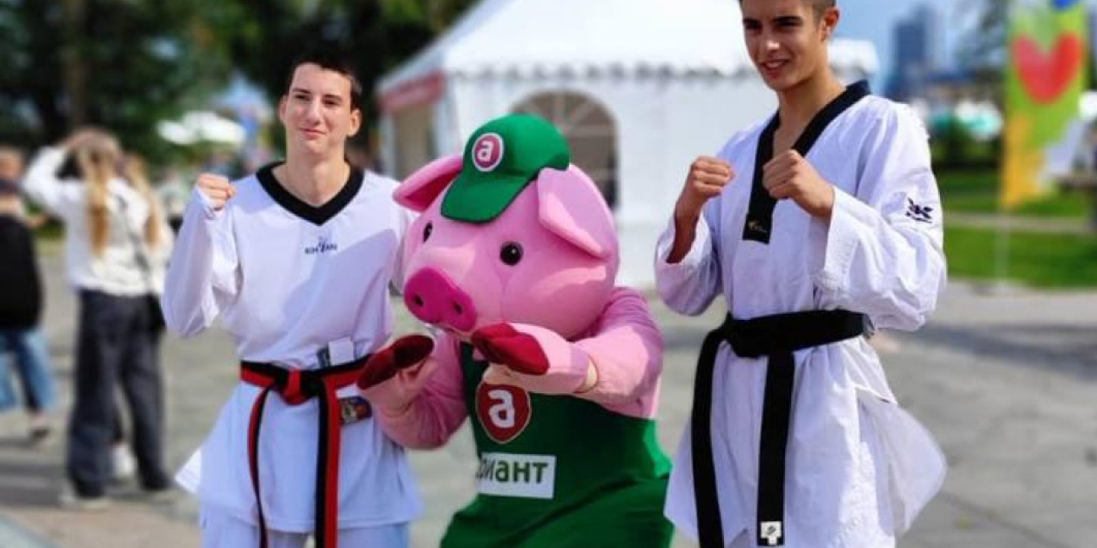 Гостей встречал наш талисман - харизматичный поросенок Арик. Он фотографировался со всеми желающими, танцевал и веселился вместе с ними.