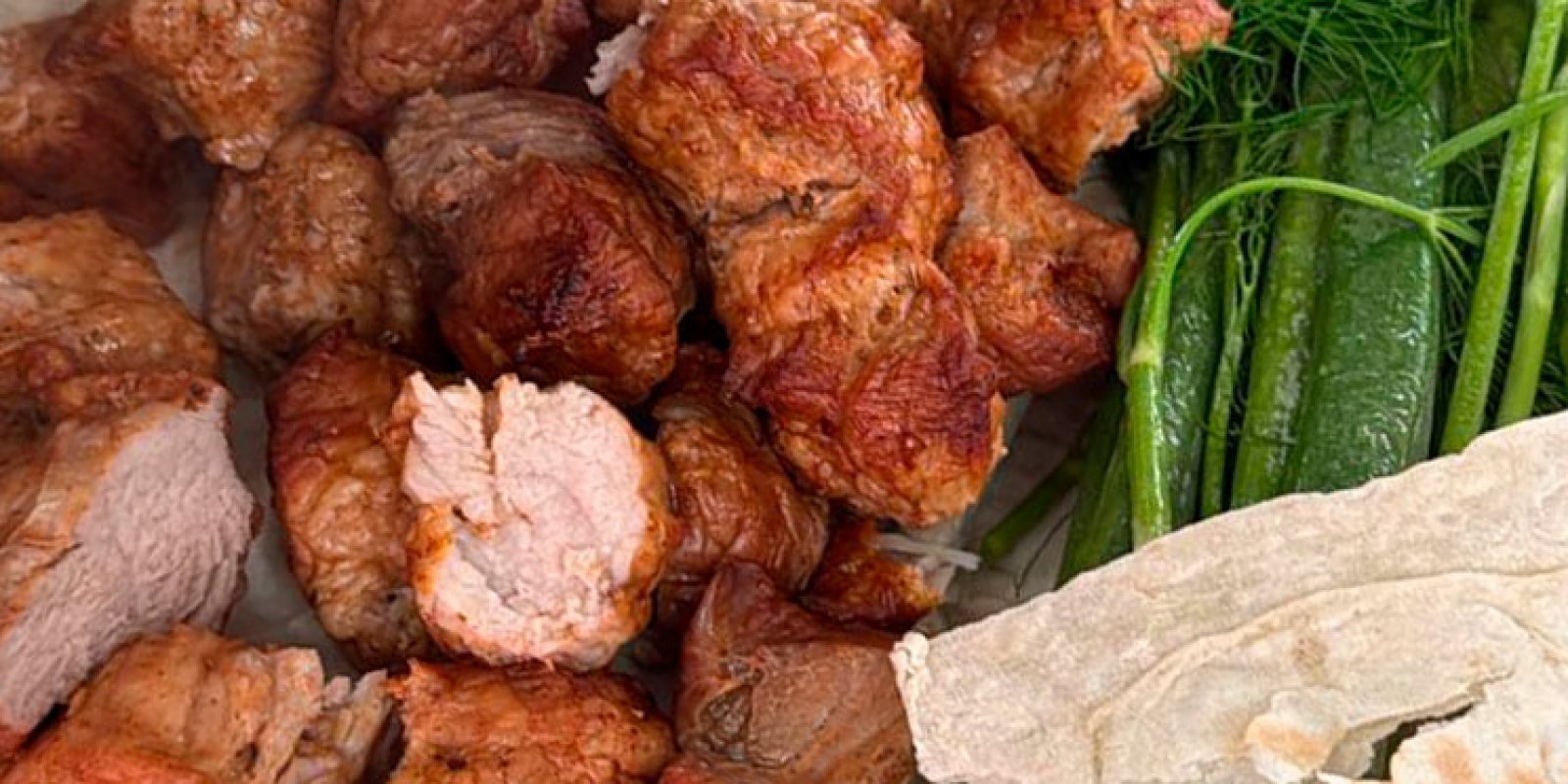 - Шашлык "Субботний": Сочные кусочки свиного окорока, маринованные в соке ягод и фруктов (яблоко, апельсин, лимон) с экстрактом папайи. Почувствуйте пикантный вкус и насыщенный аромат!