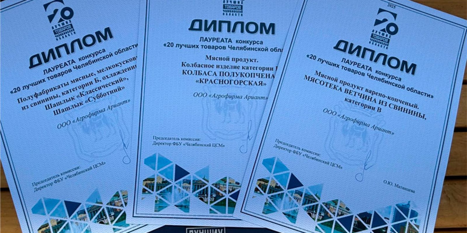 Агрофирма «Ариант» стала лауреатом конкурса «20 лучших товаров Челябинской области»!